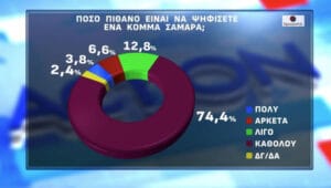 Στο 10,4% είναι το αντίστοιχο ποσοστό που συγκεντρώνει ο Αντώνης Σαμαράς στο ενδεχόμενο δημιουργίας κόμματος.