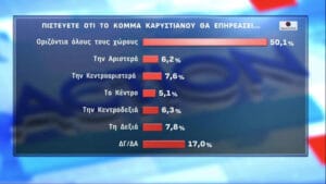 Ενώ οι πέντε στους δέκα πιστεύουν ότι το κόμμα της Μαρίας Καρυστιανού θα επηρεάσει οριζόντια όλους τους πολιτικούς χώρους.