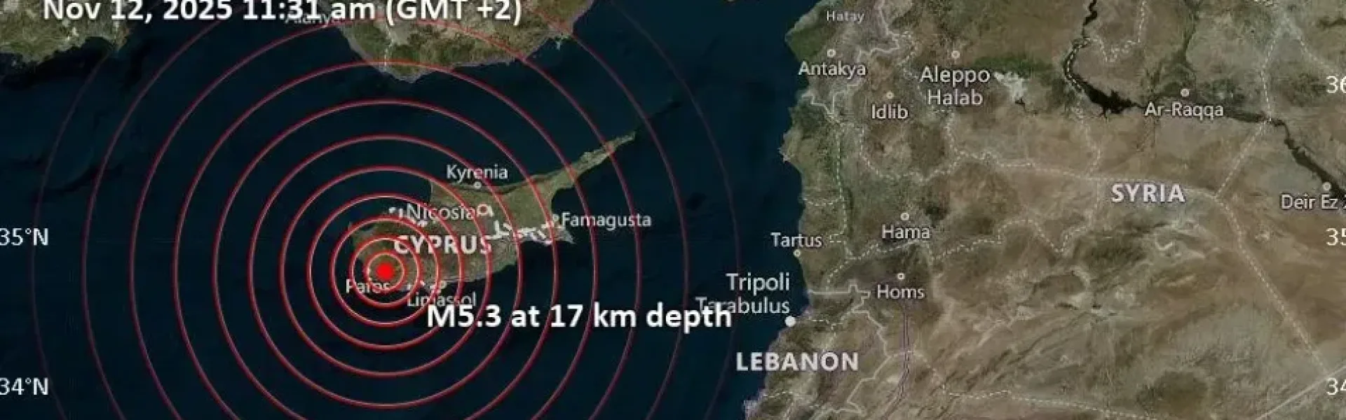 Ισχυρός σεισμός 5,3 Ρίχτερ συγκλόνισε την Κύπρο στις 12 Νοεμβρίου 2025, με δύο διαδοχικές δονήσεις σε Πάφο και Λεμεσό χωρίς θύματα, οι αρχές παραμένουν σε επιφυλακή