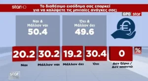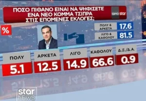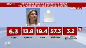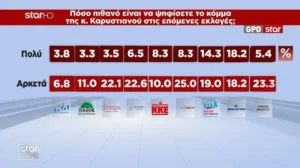 Η δημοσκόπηση της GPO για το Star αποτυπώνει μια κοινωνία πιεσμένη οικονομικά, πολιτικά κουρασμένη και έτοιμη να στραφεί σε νέες πολιτικές επιλογές. Η ΝΔ παραμένει πρώτη δύναμη, αλλά με φθορά. Το ΠΑΣΟΚ υποχωρεί. Η Πλεύση Ελευθερίας ενισχύεται. Ο ΣΥΡΙΖΑ παραμένει σε κρίση. Οι αναποφάσιστοι αυξάνονται. Η Καρυστιανού και ο Τσίπρας εμφανίζουν υψηλή δυνητική ψήφο. Το αίτημα για αλλαγή κυβέρνησης είναι κυρίαρχο.