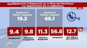 Η τοποθέτηση της Μαρίας Καρυστιανού για τις αμβλώσεις προκαλεί έντονη κοινωνική αντίδραση. Το 68,1% δηλώνει ότι διαφωνεί ή μάλλον διαφωνεί με τη θέση της, ενώ μόλις το 19,2% συμφωνεί.