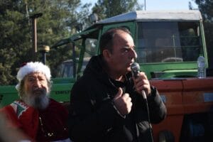 Όπως ανέφερε, μέχρι την κακοκαιρία «Ντάνιελ» ήταν ενεργός μελισσοκόμος, ωστόσο έχασε περίπου 100 μελίσσια και μέχρι σήμερα δεν έχει αποζημιωθεί. «Έχω καταστραφεί», είπε χαρακτηριστικά, τονίζοντας ότι βρίσκεται στην ίδια θέση με όλους όσοι παλεύουν καθημερινά για να επιβιώσουν. Αντί για το χαρούμενο «χο, χο, χο», όπως είπε, ήρθε να πει το «αχ, αχ, αχ» για όσα βιώνουν οι τοπικές κοινωνίες και η αγροτιά.