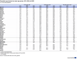Η εικόνα γίνεται ακόμη πιο ανησυχητική όταν εξετάζεται η ηλικιακή σύνθεση του πληθυσμού. Στην Ελλάδα, το 23,7% των κατοίκων είναι άνω των 65 ετών, ποσοστό που την κατατάσσει τρίτη στην Ευρωπαϊκή Ένωση, μετά την Ιταλία (24,7%) και τη Βουλγαρία (24%). Το αντίστοιχο ποσοστό το 2015 ήταν 20,9%, γεγονός που δείχνει μια απότομη αύξηση μέσα σε μόλις δέκα χρόνια.