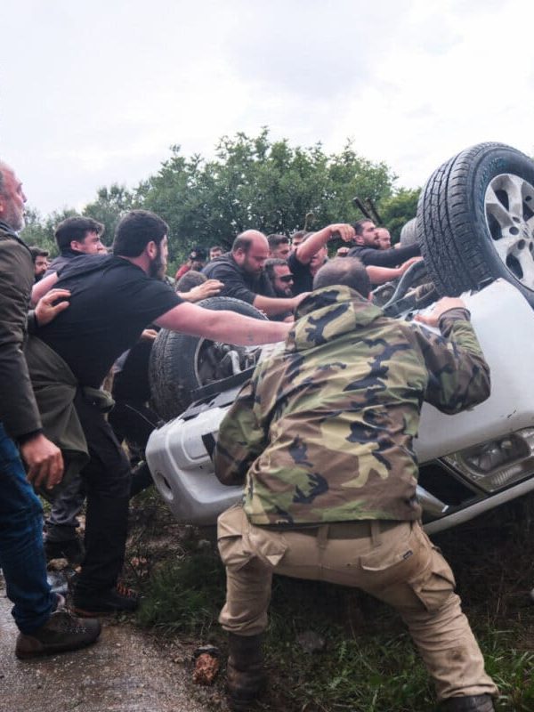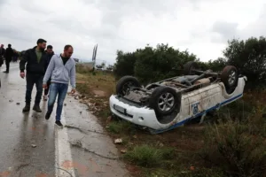 Στα Χανιά, οι κινητοποιήσεις πήραν βίαιη τροπή. Κατά τη διάρκεια της πορείας προς το αεροδρόμιο «Ιωάννης Δασκαλογιάννης», ομάδα αγροτών επιτέθηκε σε αστυνομικές δυνάμεις που είχαν παραταχθεί για να εμποδίσουν την πρόσβαση. Στο αποκορύφωμα της έντασης, ένα περιπολικό της ΕΛ.ΑΣ. αναποδογυρίστηκε από διαδηλωτές, προκαλώντας σοκ και έντονη αντίδραση των αρχών. Το περιστατικό καταγράφηκε σε βίντεο και φωτογραφίες, οι οποίες χρησιμοποιούνται ήδη ως αποδεικτικά στοιχεία.