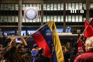 Παράλληλα, γίνεται αναφορά στις ευρύτερες γεωπολιτικές διαστάσεις της κρίσης, με έμφαση στον ρόλο των ΗΠΑ στη Λατινική Αμερική και στην ιστορική συνέχεια επεμβάσεων στην περιοχή. Οι διαδηλωτές συνδέουν τη σημερινή επίθεση με προηγούμενες στρατιωτικές και πολιτικές παρεμβάσεις, υποστηρίζοντας ότι πρόκειται για «πάγια τακτική ιμπεριαλιστικής επιβολής» που συνοδεύεται από οικονομικές κυρώσεις, πολιτικές πιέσεις και, όταν κρίνεται αναγκαίο, στρατιωτική βία.