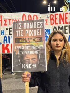 Η πορεία χαρακτηρίζεται από έντονο παλμό, με χιλιάδες διαδηλωτές να φωνάζουν συνθήματα ενάντια στον πόλεμο, τον ιμπεριαλισμό και την αμερικανική εξωτερική πολιτική. Στο μπλοκ του ΚΚΕ και της ΚΝΕ δεσπόζει μεγάλο πανό που γράφει: «Αλληλεγγύη στον λαό της Βενεζουέλας! Αυτή είναι η Ειρήνη των Αμερικανών, βόμβες, αίμα και σφαγή λαών», αποτυπώνοντας το κεντρικό πολιτικό μήνυμα της κινητοποίησης.