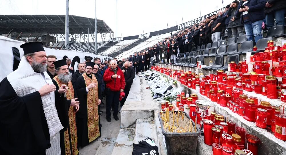 Στο γήπεδο της Τούμπας η πομπή με τους σωρούς των επτά αδικοχαμένων οπαδών του ΠΑΟΚ